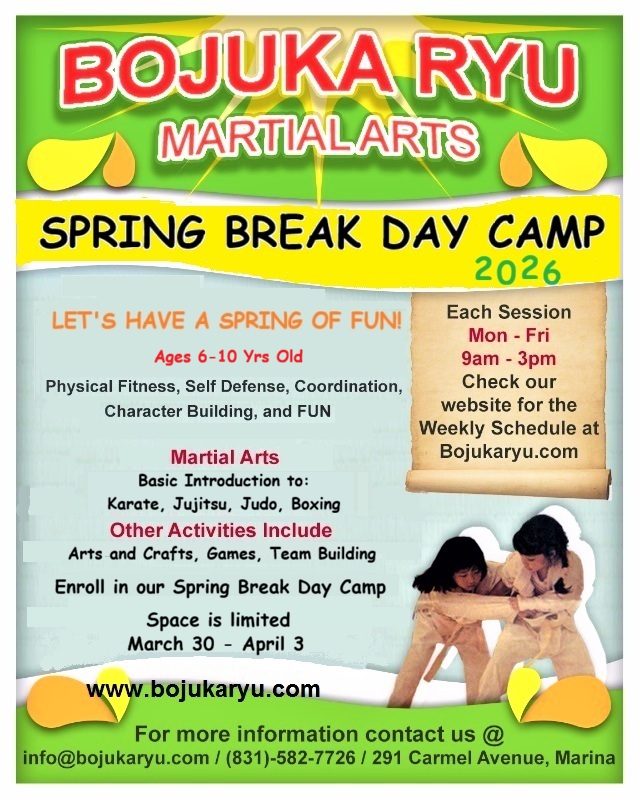 Have your child come join us to learn the many benefits of the martial arts, i.e., discipline, physical fitness, self-protection, and character building in a fun and safe environment, have them come join us at the Bojuka Ryu Martial Arts Day Camp. No Martial Arts experience necessary. There will also be other activities including crafts, team building, games, and more!